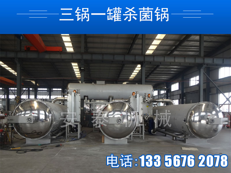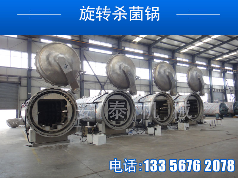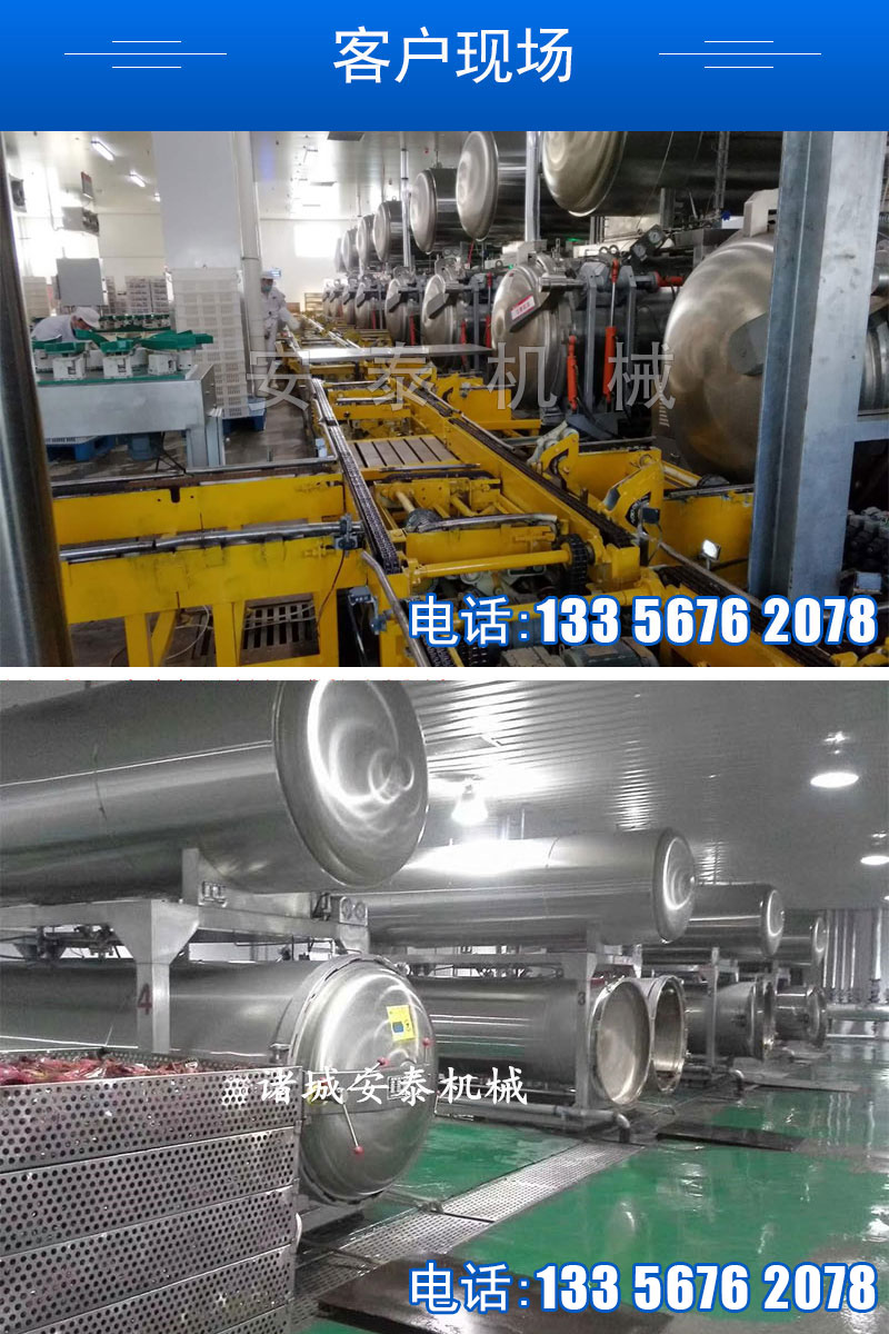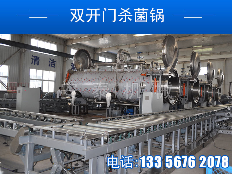 ①将包装好的产品装篮送入灭菌釜中,釜门关闭。然后釜门通过三重安全联锁保证安全。在整个灭菌过程中,机械、电气等方式连锁,保证杀菌锅安全运行。