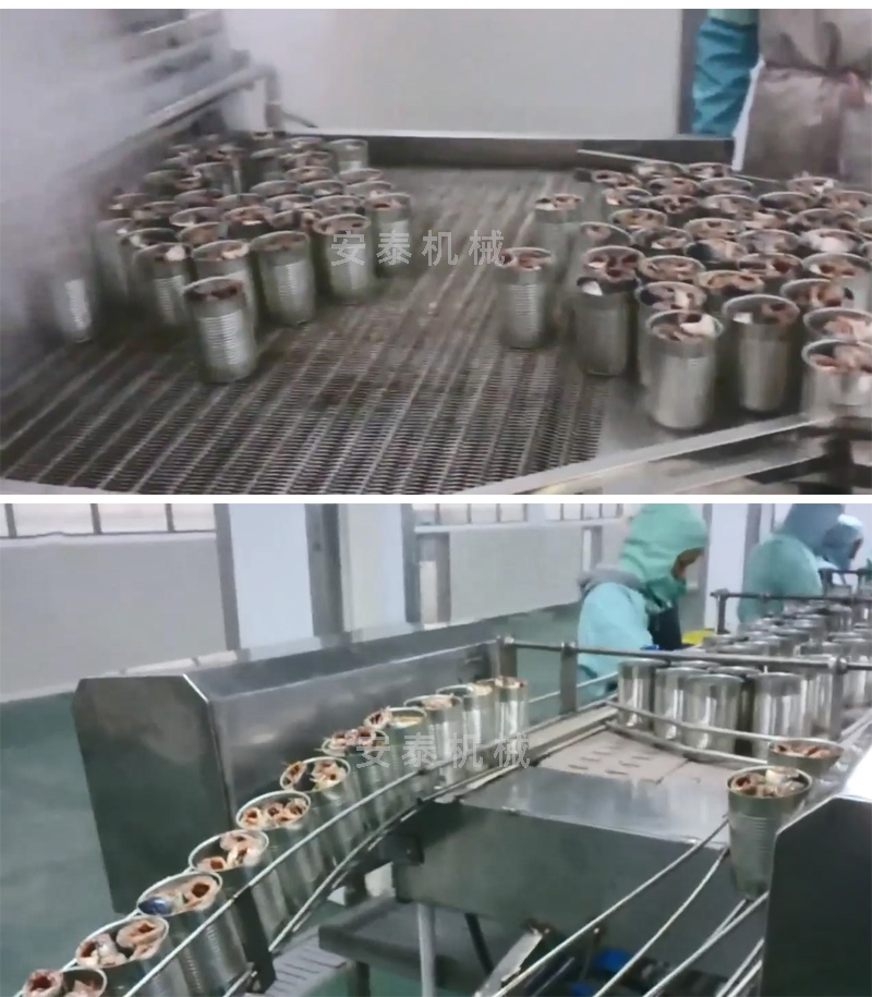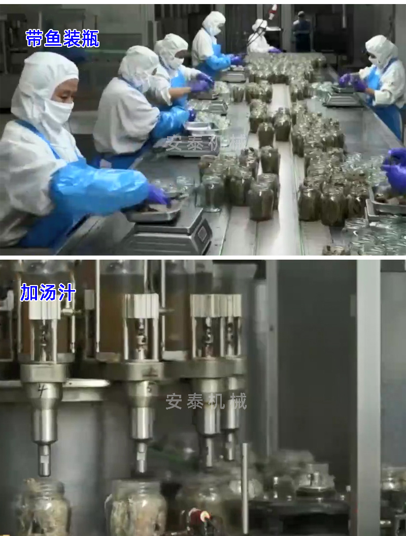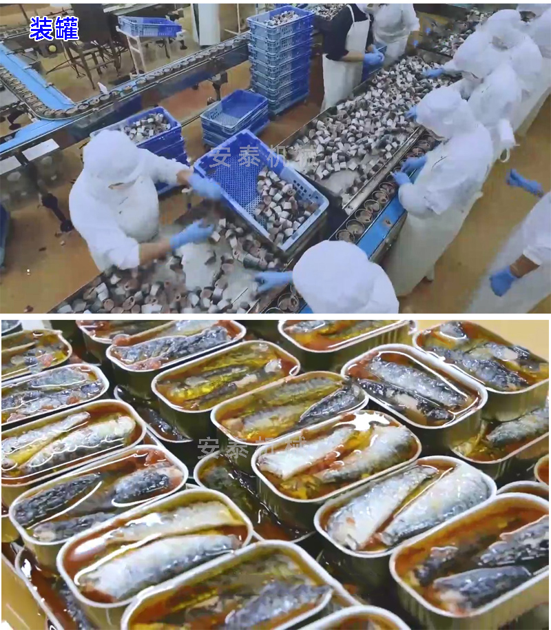 解冻——切断——清洗——腌制——烘干——油炸————浸汤汁——装罐(装瓶)——真空封罐——高温杀菌锅——装卸笼——实罐清洗——吹干——贴标——装箱——码垛